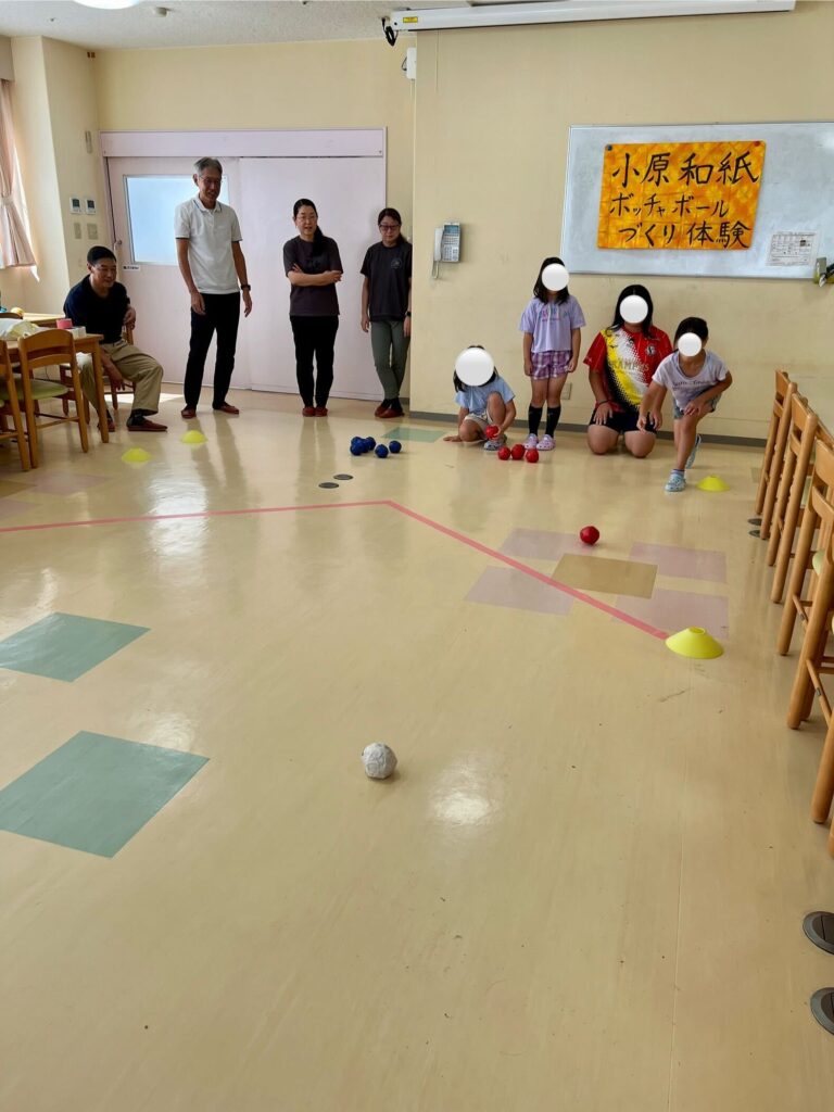 9月21日 トヨタ自動車プロボノコミュニティの皆さんと小原和紙を使って、ボッチャボールを作り、ゲームも行いました。
