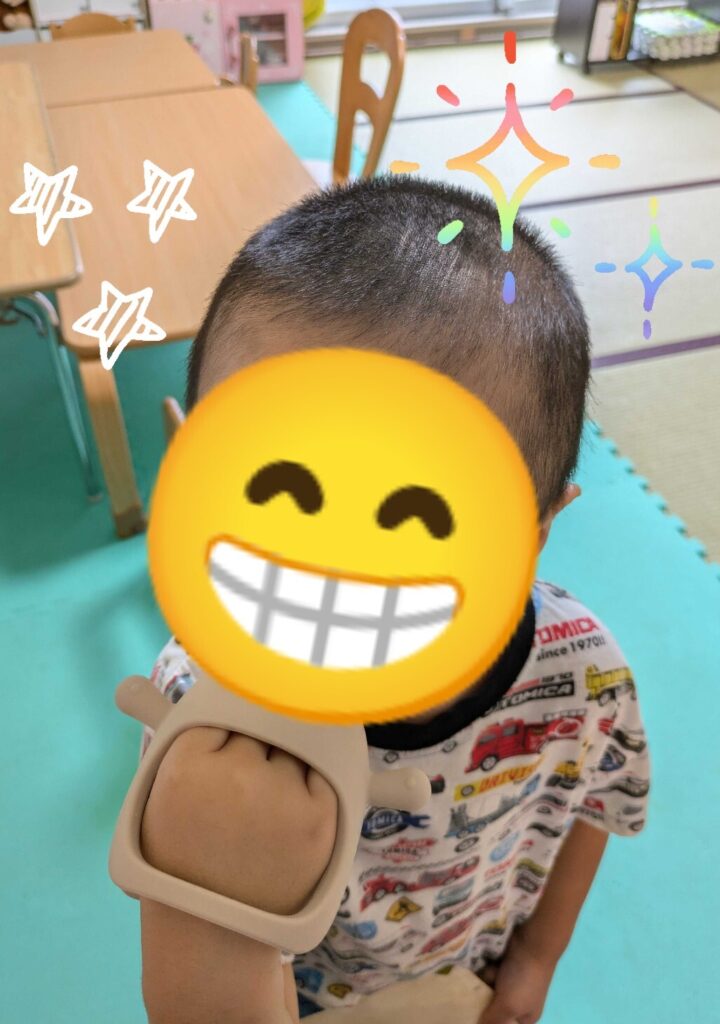 今回、寄贈いただいた男の子は「服を常に嚙んでしまう」現状が見られました。また、「指吸」を常にしており親指が赤くなってしまっておりました。