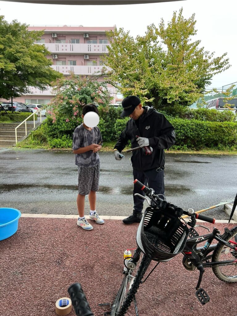 子ども達はスプレーオイル等を使い、自転車内部に残った汚れ・サビも落として、ピカピカに磨き上げることができました。ブレーキも確認していただけ、子ども達は乗り心地を確かめていました。