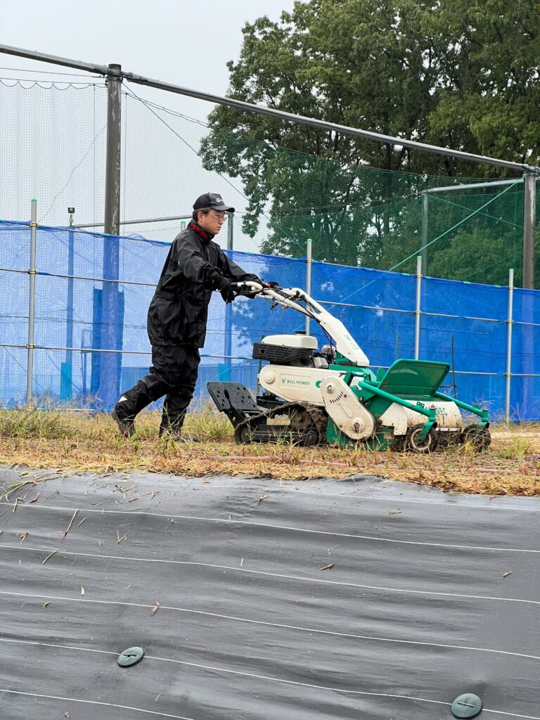 この大きな草刈り機を軽トラに乗せてまで、学園・児童のためにと行って下さいました。