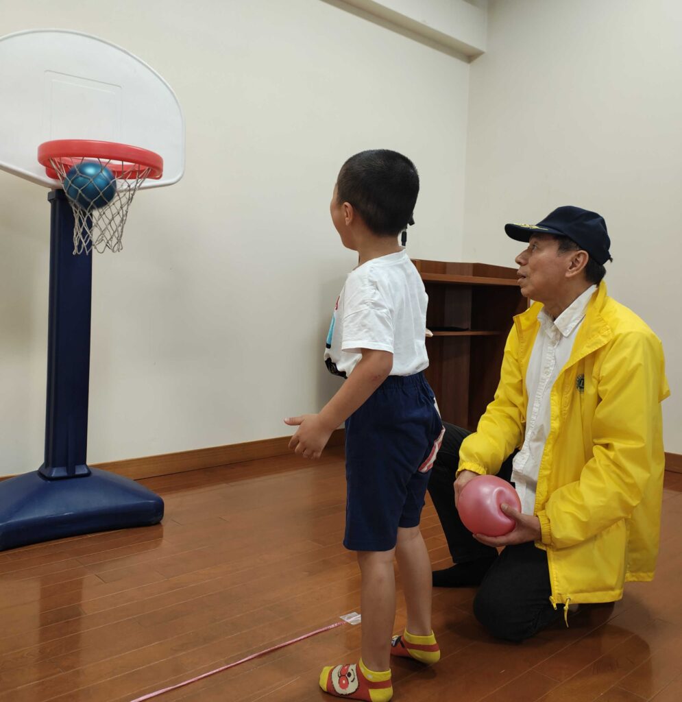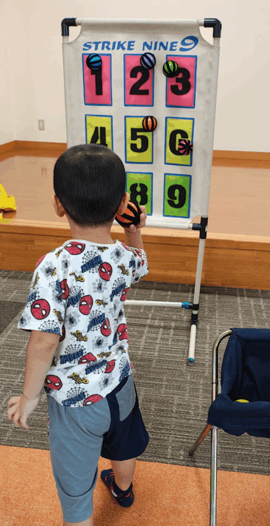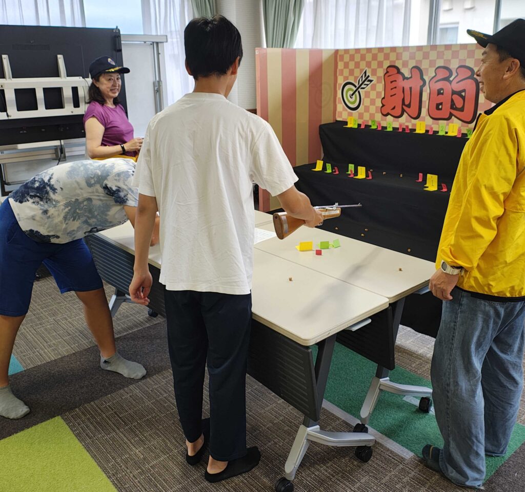 普段、梅ヶ丘学園にはない(小さい子用のバスケットゴール)や(射的)を中心に時間も忘れて子どもたちは遊んでおりました。その際も大きい子が小さい子を連れて誘導を行ってくれる姿や呼びに言ったはずが、自分も一緒になって遊んでしまうなど、微笑ましい様子がたくさん見られました。
