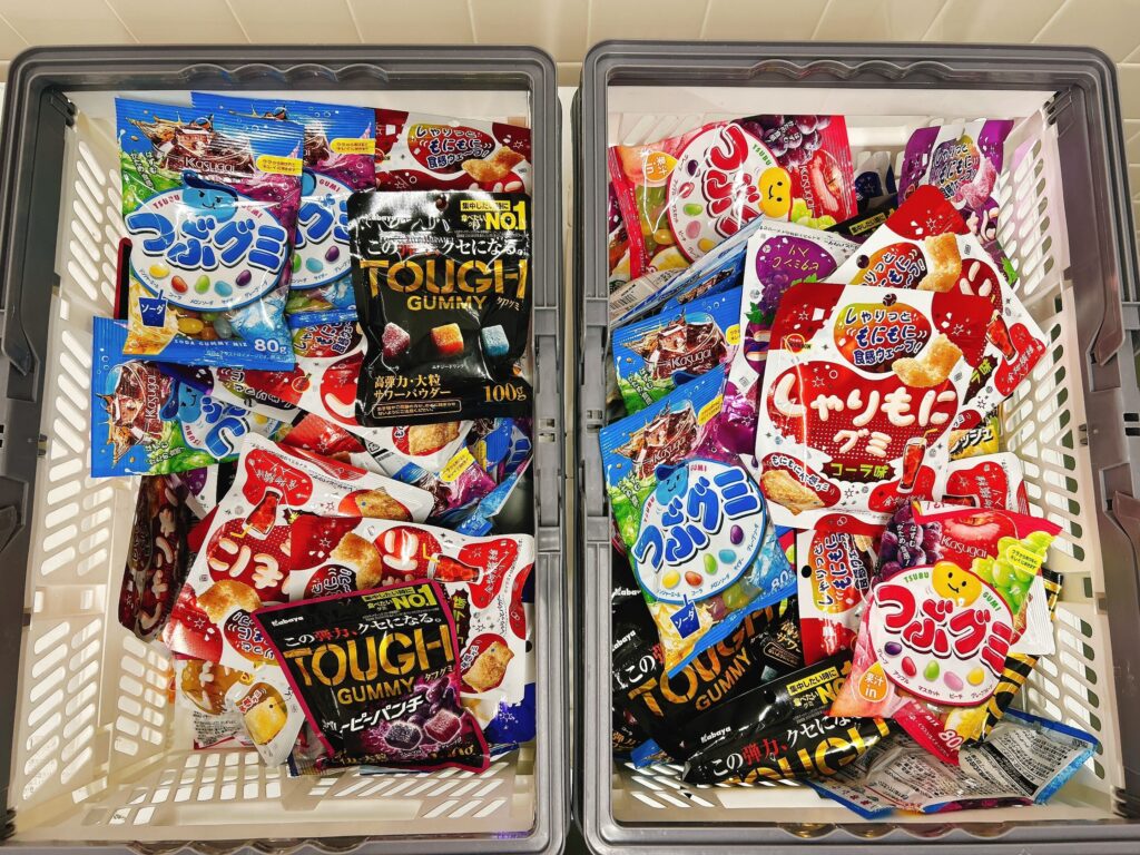 グミはTOUGHグミやつぶグミなど特に子どもたちが大好きなものをたくさんいただき、おやつで提供すると「今日のおやつグミ!?やった~!!」と嬉しそうに話しておりました。