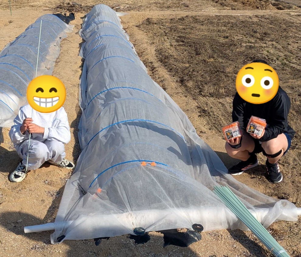 子どもたちも、「これで多くの野菜たちを寒さや風から守ることができるぞ!🔥」と使うのをとても楽しみにしておりました。
