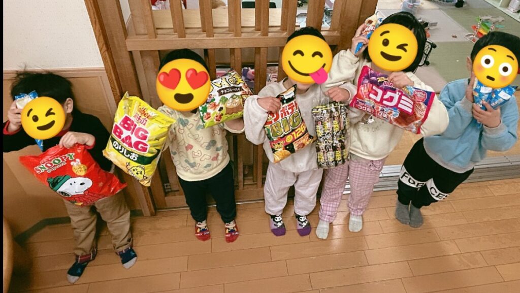 また、別の日には子どもたちへとたくさんのお菓子をいただきありがとうございました。